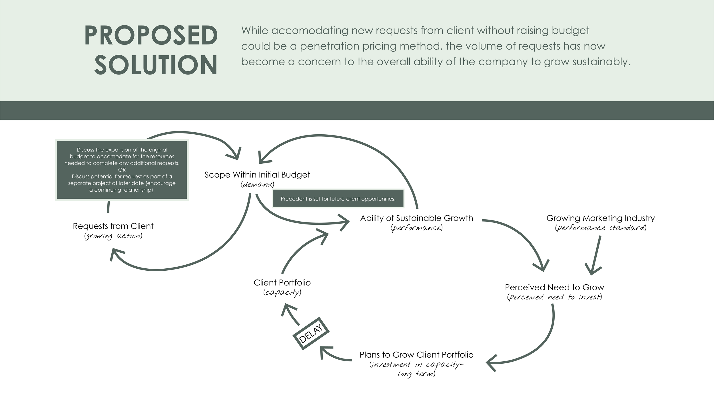 Afterward, I analyzed a hypothetical issue within an organization that followed the growth and underinvestment system archetype introduced in the book. After a thorough overview of the situation, I proposed a solution to the systematic issue.